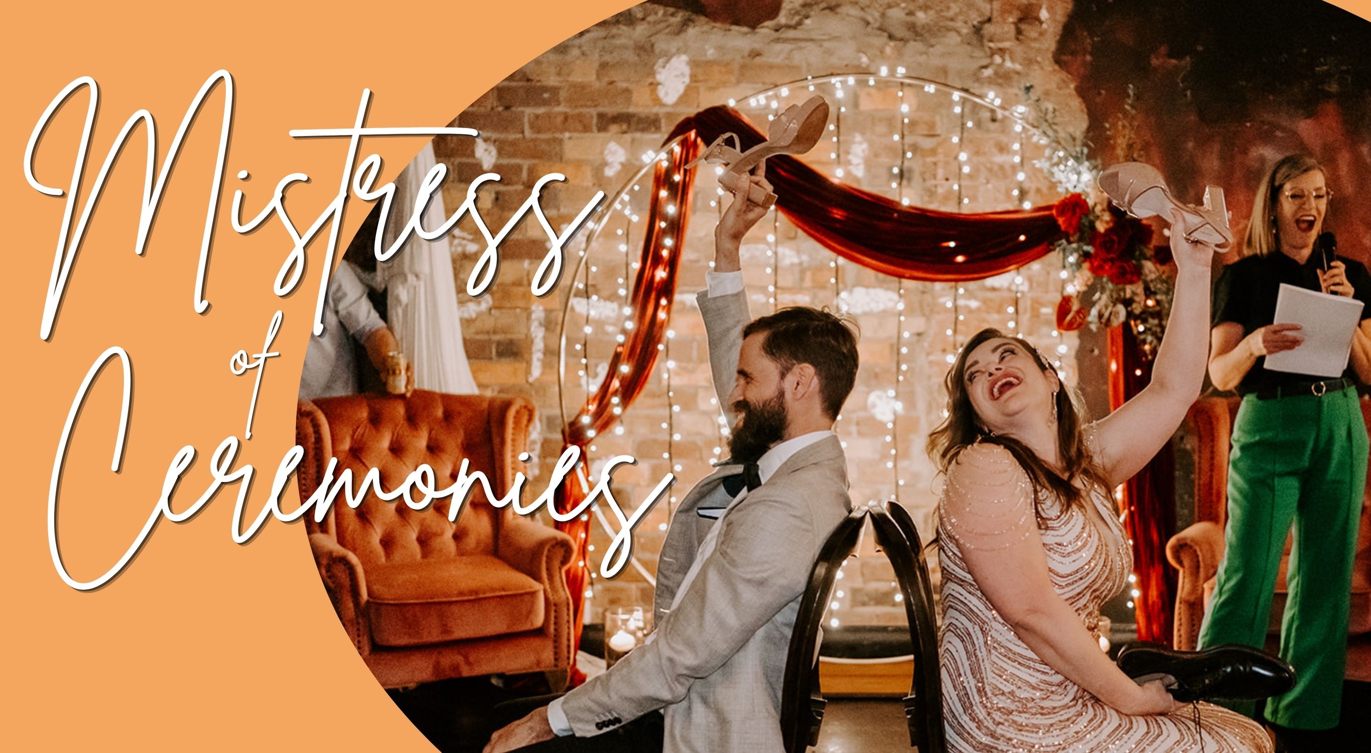 - Professional Mistress of Ceremonies (MC/emcee) for four hours from end of ceremony (extra hours can be added).
